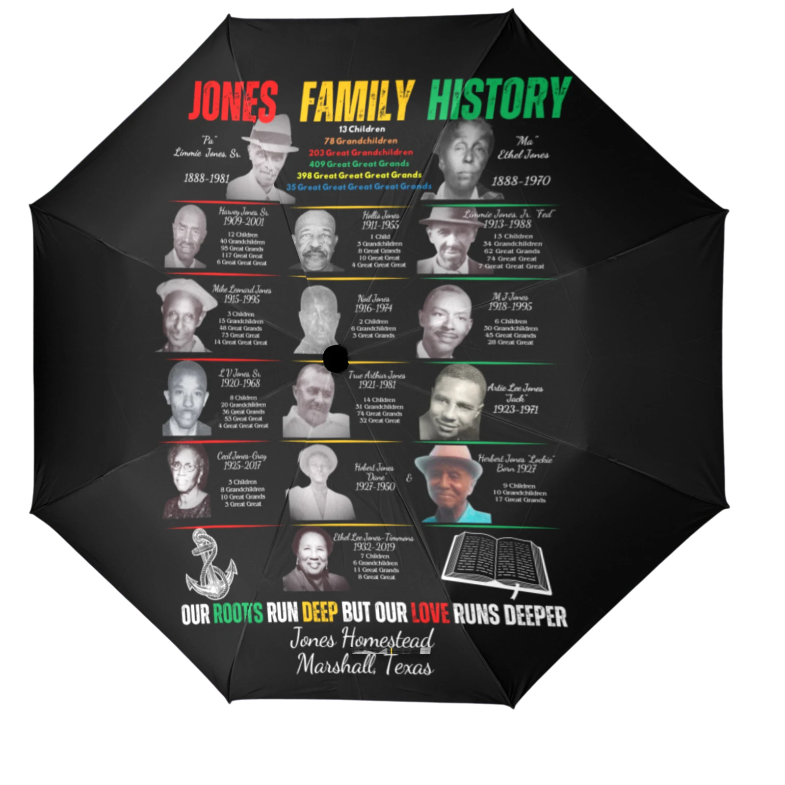 Designed to unite and inspire connection, the Jones 3D Custom Umbrella is not only a practical tool but also a perfect keepsake for all family members. It’s the ultimate blend of functionality, style, and sentiment, ensuring your reunion will be remembered for years to come.