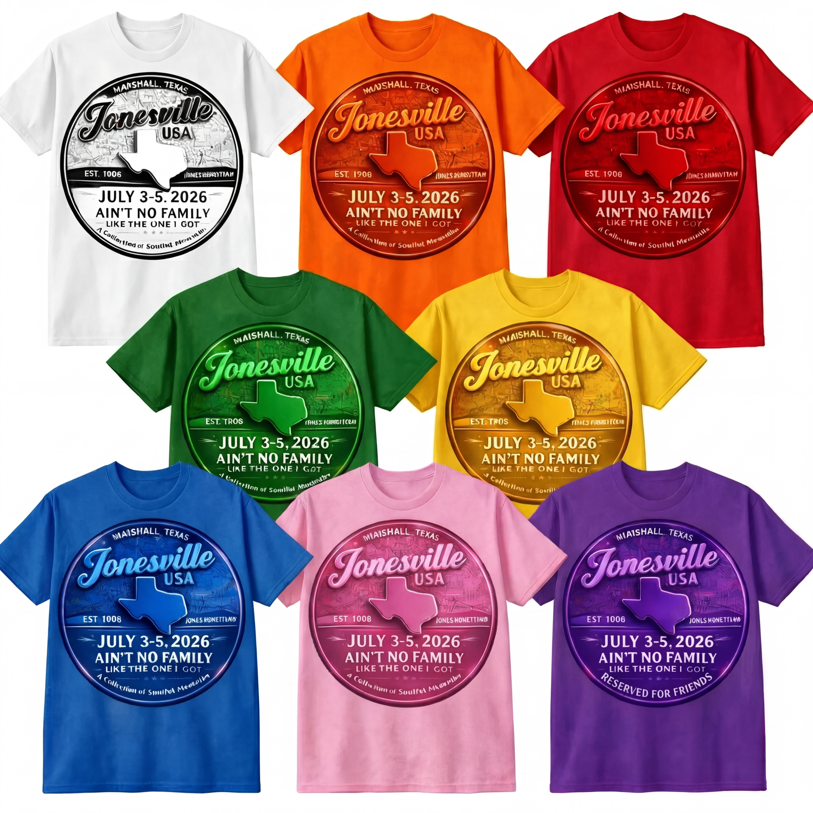 | Jones Family Generation Color | White, Orange, Red, Green, Yellow, Blue, Purple, Pink |